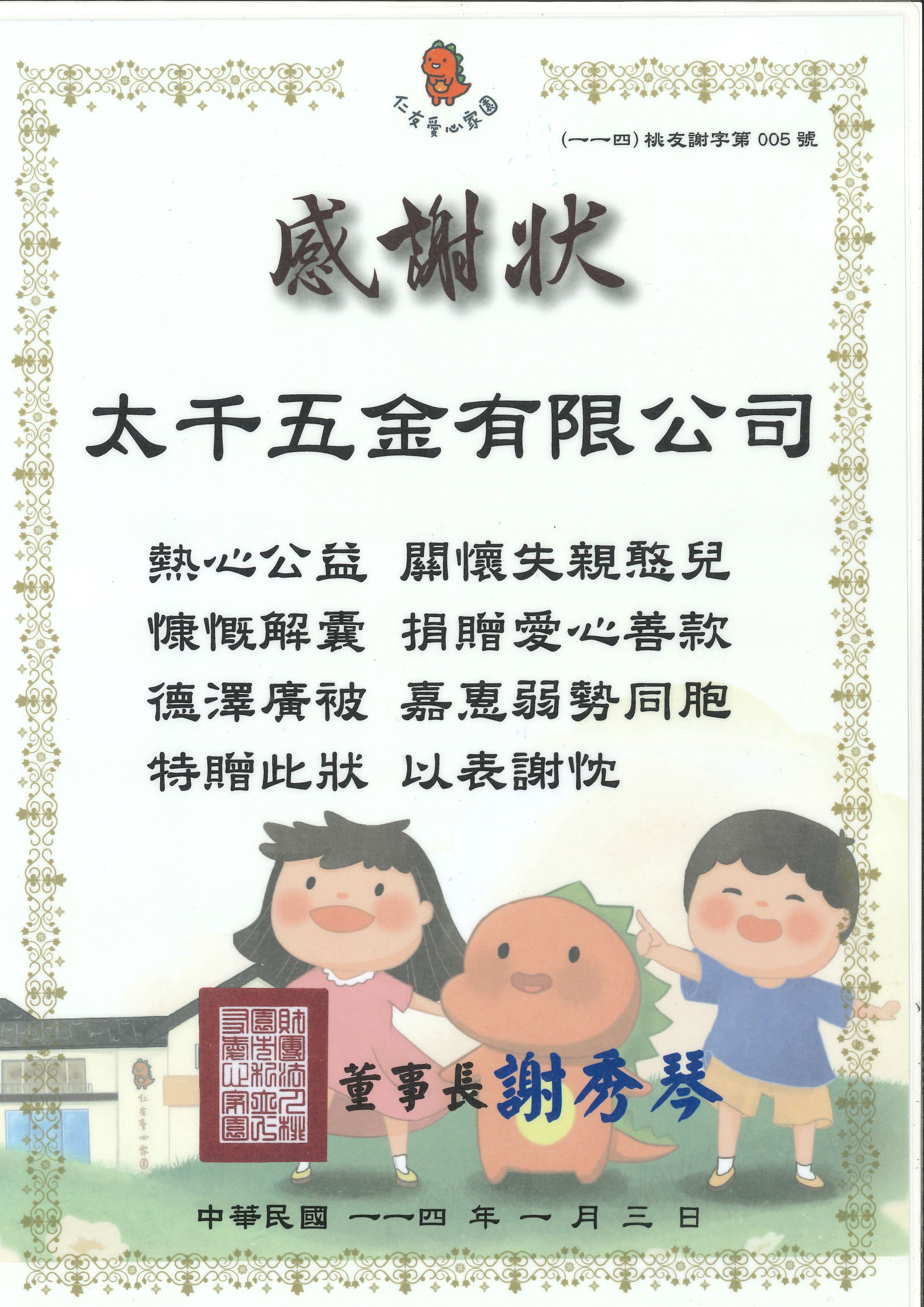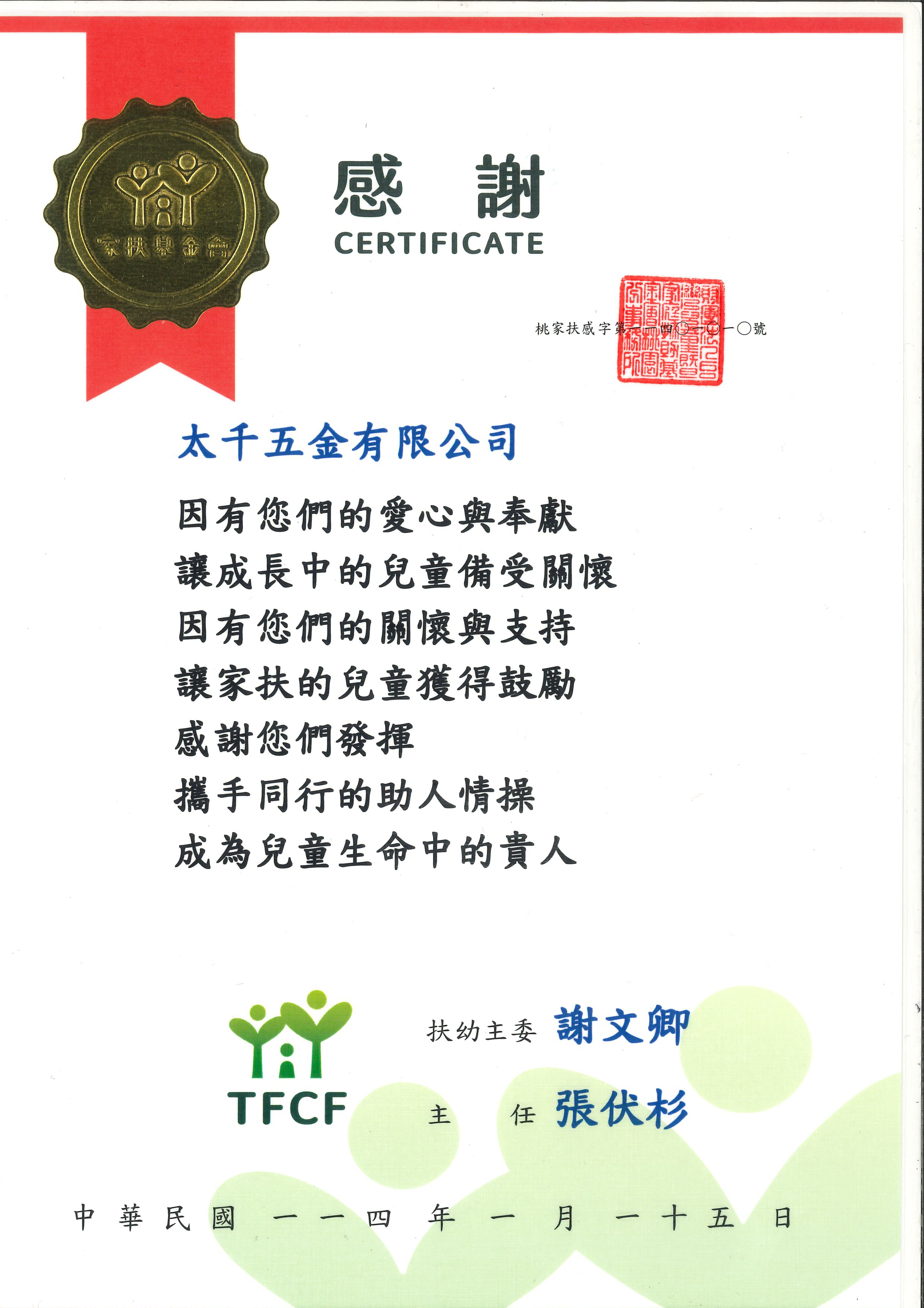太千五金將持續秉持回饋社會的使命,與大家共同攜手前行。