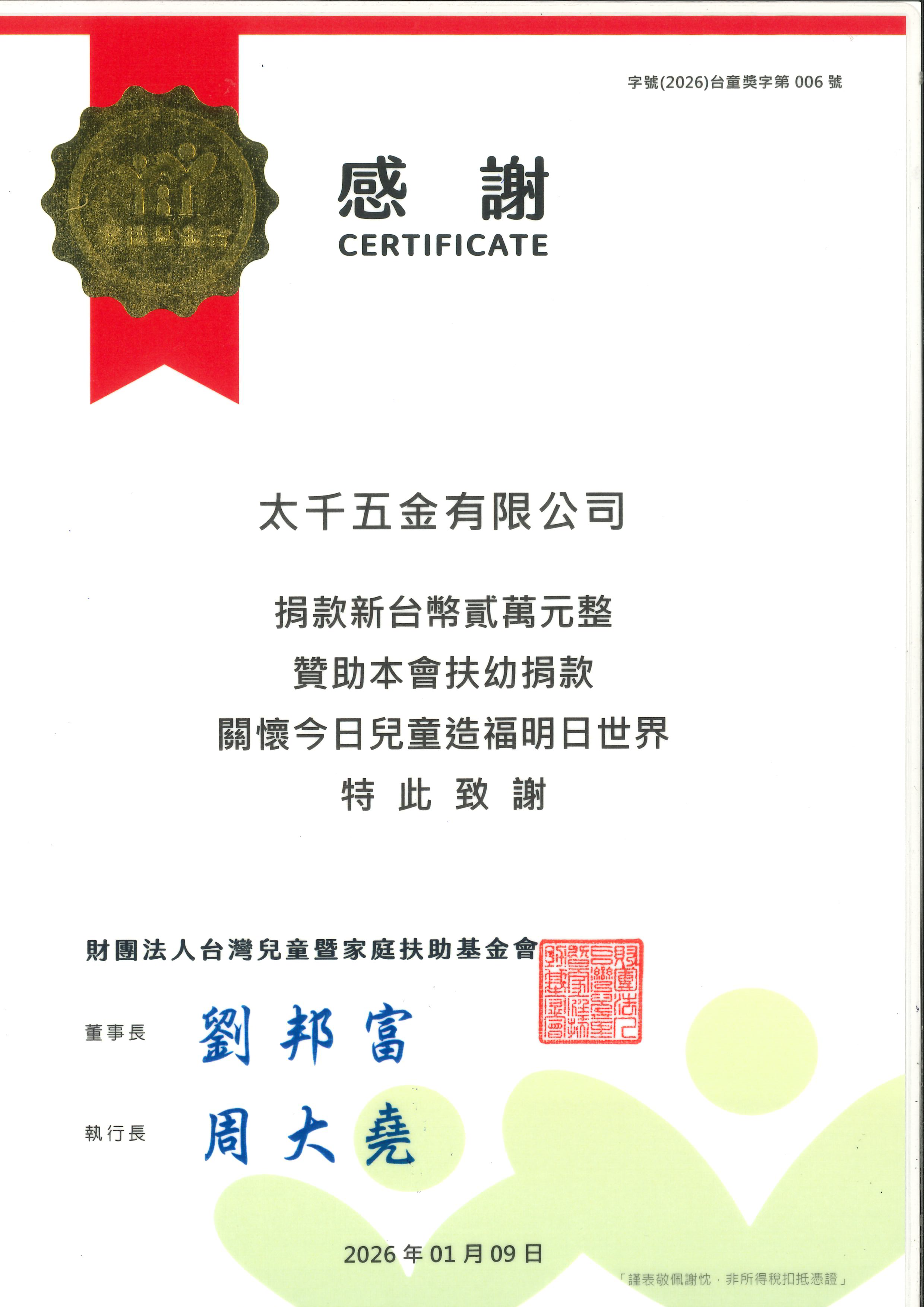 太千五金將持續關注在地社會需求,以實際行動投入公益,讓關懷不只是一時的付出,而是能在社區中長久累積、持續傳遞,與社會各界一同為更美好的未來努力。